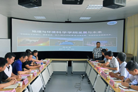 会议开始前,闫利会带领一〇五地质队一行参观了国家喀斯特石漠化防治工程技术研究中心,并就科研团队近年来在生态文明建设、减灾防灾、水土保持、生态红线划定、主体功能区规划等领域开展的工作及取得的成果进行了介绍。