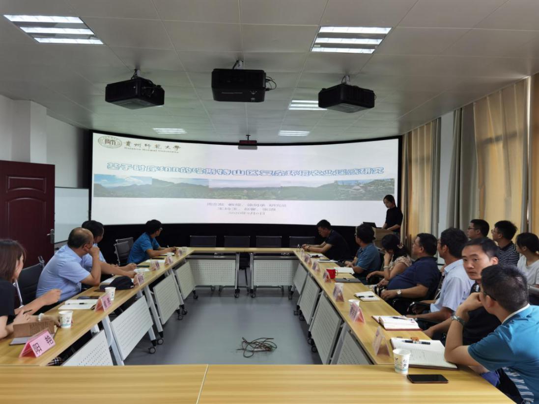 会上,在读博士生彭睿文、王玲玉分别就“高原山地低空无人机遥感应用研究”、“基于时序SAR的喀斯特山区复杂环境农业遥感研究”进行了PPT汇报,展现了研究团队立足贵州大地服务产业发展与区域社会经济发展所做的贡献。
