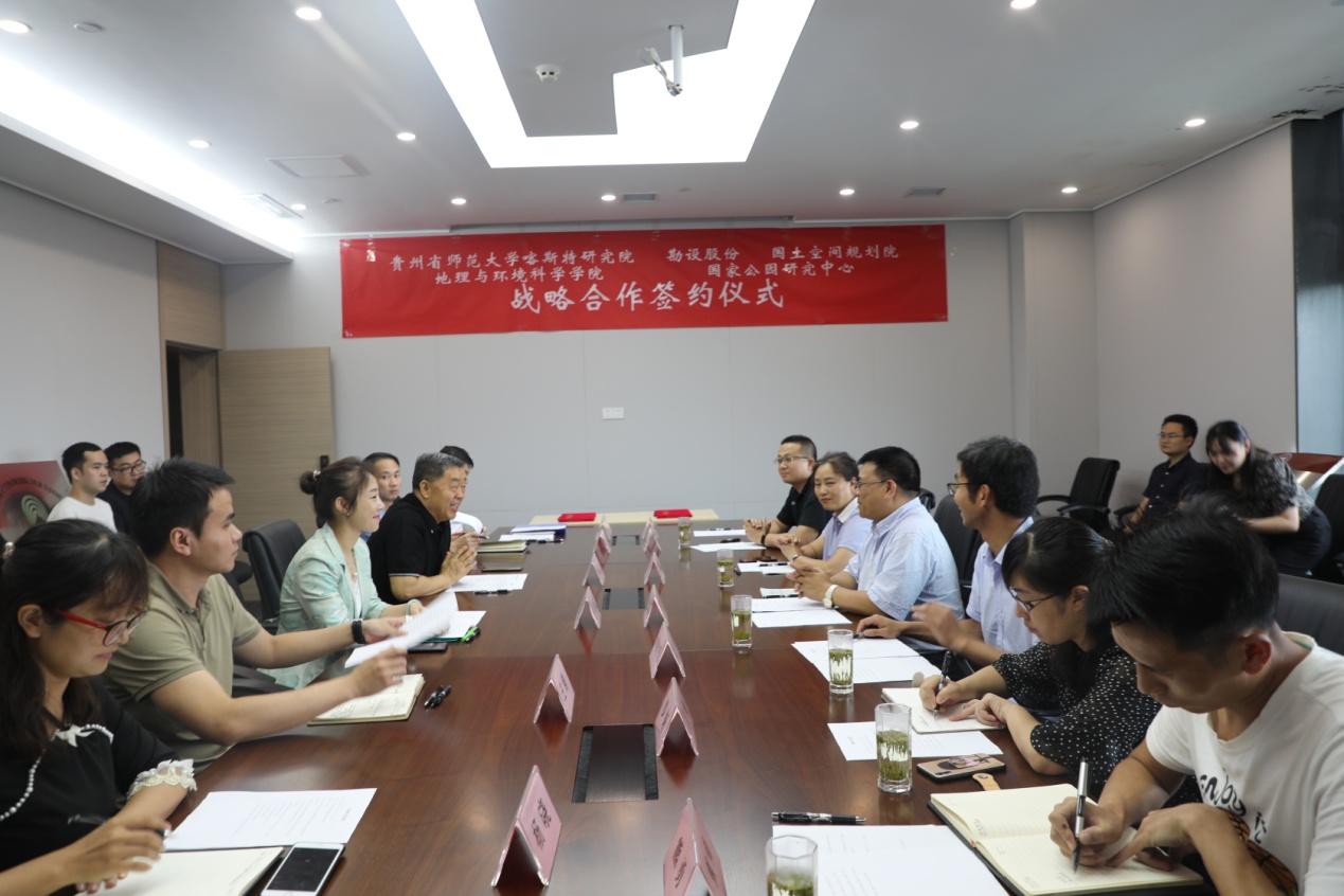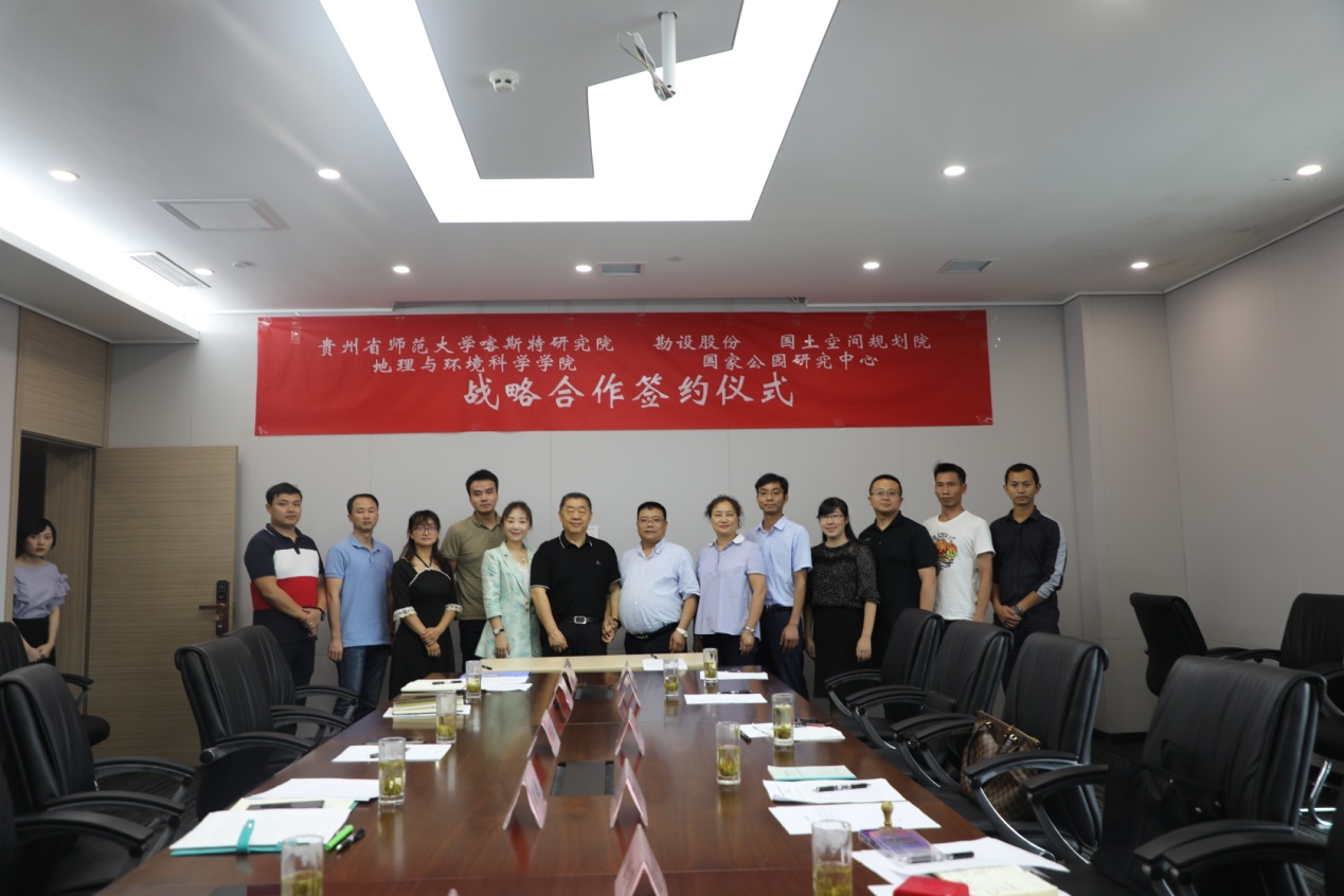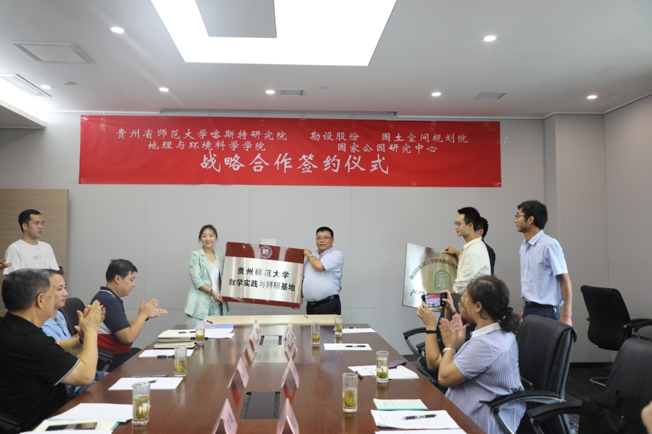 8月21日,点点taptap、喀斯特研究院与贵州省交通规划勘察设计研究院股份有限公司国土空间规划院、国家公园研究中心战略合作协议签约仪式在勘设股份大厦举行。勘设股份国土空间规划院经理唐艳、总工程师傅玉良、副经理王腾、副总工程师班羽、杨晓,公司经理周忠发、副经理赵翠薇、经理助理赵宇鸾、地理科学系主任罗娅、人文地理与城乡规划系主任赵航及相关科室代表熊勇、陈飞老师参会。