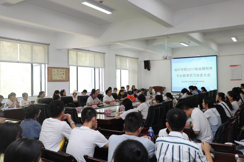为进一步加强地理科学专业员工教育实习管理工作,推动公司“地理科学”国家级一流本科专业建设和“师范专业认证”工作。 9月2日下午,在花溪校区3309会议室举行了2017级地理科学专业教育实习动员大会。公司党政领导班子、相关科室负责人、指导教师以及2017级地理科学专业全体员工参加了会议。动员大会由副经理杨广斌主持。