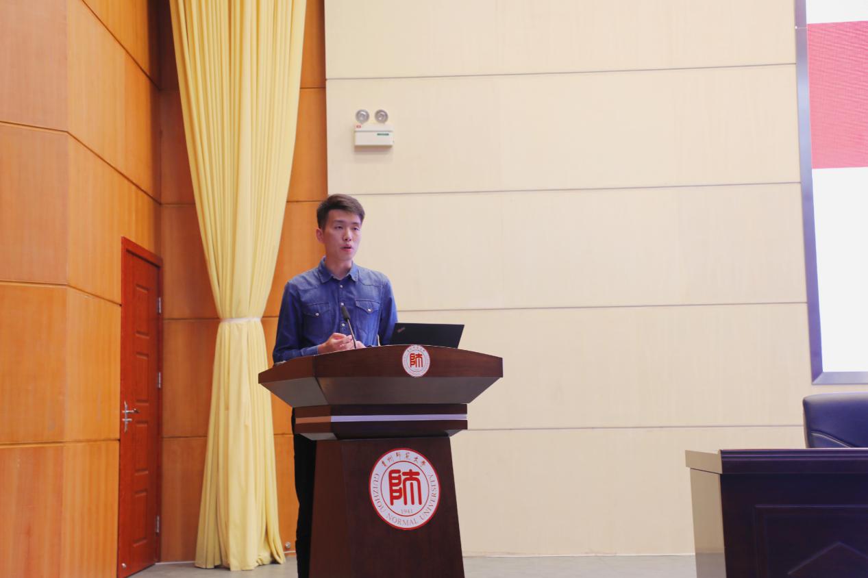 随后,导师代表周秋文发言。他分享了在美国访学期间的一些见闻及感受,特别提到全体起立凑唱国歌时,心潮澎湃,深刻体会到回“家”的温暖。然后结合自身经验告诉大家在研究过程中要“因地制宜”,不要被固定思维束缚,善于发现,勤于探索。
