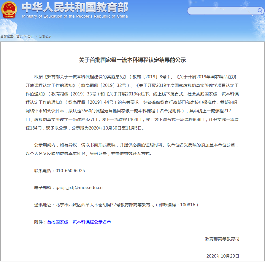2019年10月,根据《教育部关于一流本科课程建设的实施意见》(教高〔2019〕8号),目标经过三年左右时间,建成万门左右国家级和万门左右省级一流本科课程(“双万计划”)。