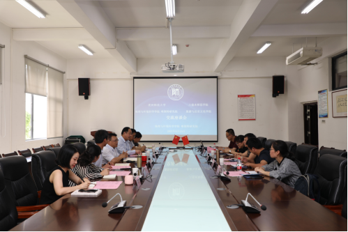 6月25日下午,点点taptap 喀斯特研究院与六盘水师范公司旅游与历史文化公司交流座谈会在花溪校区点点taptap3309会议室召开。六盘水师范公司旅游与历史文化公司张美竹经理、代稳副经理,地理科学系杨琴主任,实验中心周琳主任和马士彬教授;公司经理周忠发、副经理杨广斌、赵宇鸾,实验室蔡雄飞主任,地理科学系罗娅主任、杨恩林副主任和刘智慧老师参会。