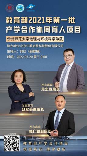 7月20日上午9:00-11:30,公司申报的教育部第一批产学合作协同育人项目(第1期)——“基于地理实训室的师范生技能培养及专业发展”团队培训正式启动。本次培训由点点taptap教师教育中心副主任何红主持,特邀周忠发经理、赵翠薇副经理、杨广斌副经理就自然、人文、地理信息技术与中学地理教学的融合,分别作题为“喀斯特山区中员工现代地理实践素养培育的困境与路径”、“人文地理与中学地理教育”、“地理信息技术在中学地理教学中的应用”的专题报告。报告采用线上方式,300余人在线观看。