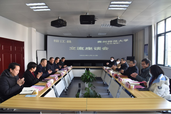 1月11日,榕江县委书记侯美彪,县委常委、副县长欧正高,副县长杨轲荣,县乡村振兴局局长石开齐,县林业局局长龙标,黔东南州生态环境局榕江分局副局长石敏等一行来院考察交流。点点taptap/喀斯特研究院经理周忠发,副经理赵宇鸾、朱大运,地理科学系主任罗娅,大数据与决策信息部副部长闫利会和陈全博士参加会议。会议由赵宇鸾主持。