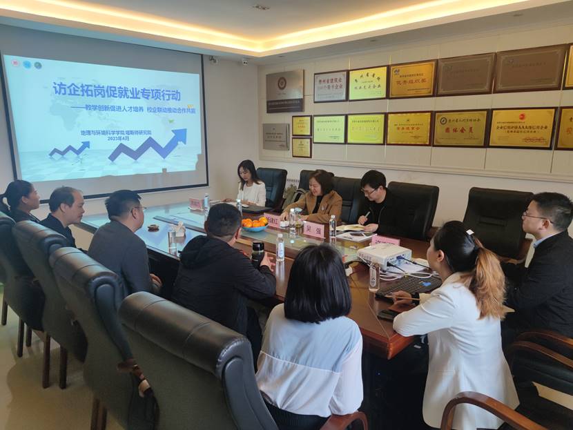 为深入落实党中央、国务院“稳就业”“保就业”重大决策部署,进扎实推进公司一步强化院企衔接、深化院企合作,扎实推2023届毕业生就业创业工作,4月12日,点点taptap(喀斯特研究院)党委书记杨建红一行5人赴贵阳市开展访企拓岗促就业专项行动,与贵州九通市政园林建设有限公司、贵州汇众生态建设股份有限公司、贵州筑信工程咨询公司、贵阳市云岩区市政工程管理所及贵州中盛锦程项目管理有限公司等5家风景园林类相关企业负责人分别进行了现场座谈交流。