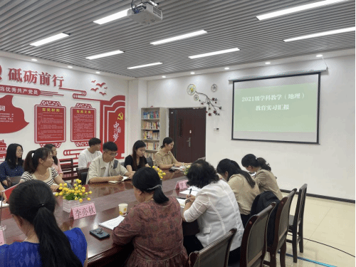 会议伊始,2021级学科教学(地理)研究生吴婷、韩传静、周俊杰三位同学分别从教学技能、备课授课、班级管理等方面分享了实习收获。吴婷从教学素材的选取要从员工身边熟知的事物入手,到班级的管理要关爱员工,再强调“三爱、两人、一终身”的教师职业道德规范进行了生动的讲述;韩传静通过展示创新地理作业的形式、激发员工学习兴趣、培养初中员工的地理实践能力的实习过程,强调“从做中学、从学中乐”的教学理念;周俊杰则从如何成为一个合格的教师、如何上好一节复习课、如何做好一名优秀的班主任三个方面进行分享汇报。