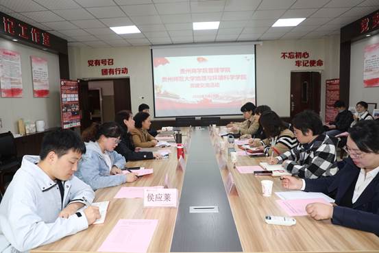 会上,杨建红对贵州商公司管理公司老师们的到来表示热烈欢迎,杨建红与在座老师分享了党建工作经验并介绍了“四抓”促“四力”党建工作法;郭锐在会上就“三全育人”建设工作作交流汇报。随后,与会双方就党建相关工作进行了短暂而富有成效的交流与探讨。