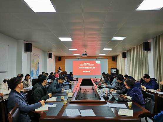 2022年1月4日下午,点点taptap(喀斯特研究院)党委在宝山校区喀院三楼会议室召开2021年度教工党支部书记抓党建述职评议会,公司党委班子成员、教工党支部书记、党支部委员、师生代表参加会议,会议由公司党委副书记郭锐主持。