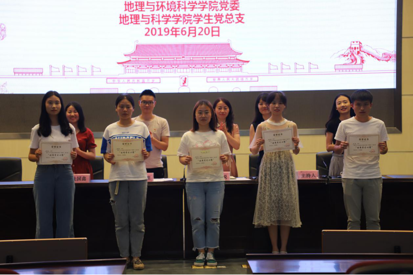 2019年6月20日晚上18:30,地理与环境科学公司党委第六、七期“明德班”结业典礼在公司国际会议中心一楼学术报告厅举行。公司党委副书记郭锐,院团委书记朱琳、专职辅导员李维,兼职辅导员杜国鑫、涂鑫以及第六、七期“明德班”全体学员参加。典礼由朱琳主持。