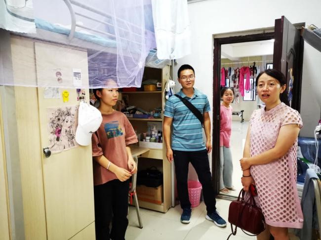 走访宿舍期间,郭锐与同学们亲切交谈,询问返校时间,关心同学们的宿舍衣物有无发霉、水电设施是否良好,督促同学们珍惜来之不易的疫情防控稳定形势,在宿舍和谐相处,一起营造舒适、温馨的宿舍生活环境,全力投入学习,开启新学期新征程。同行专兼职辅导员分别前往各自班级宿舍,看望班级员工,了解同学们新学期的学习、生活情况,关心同学们的身心健康。