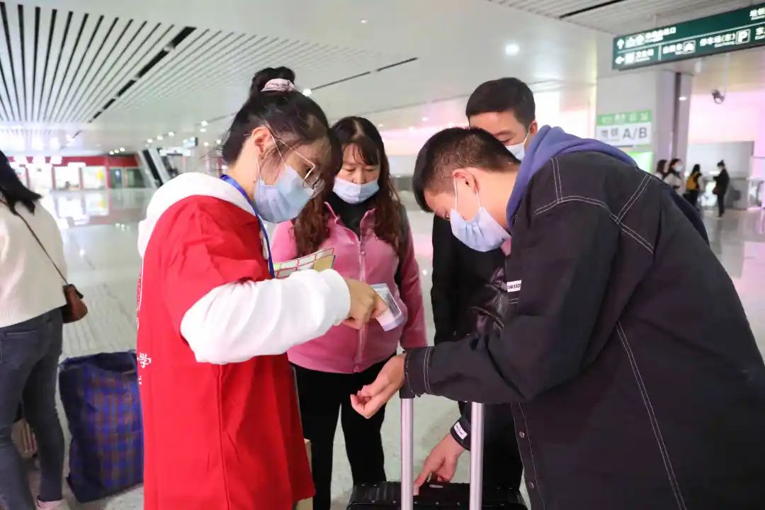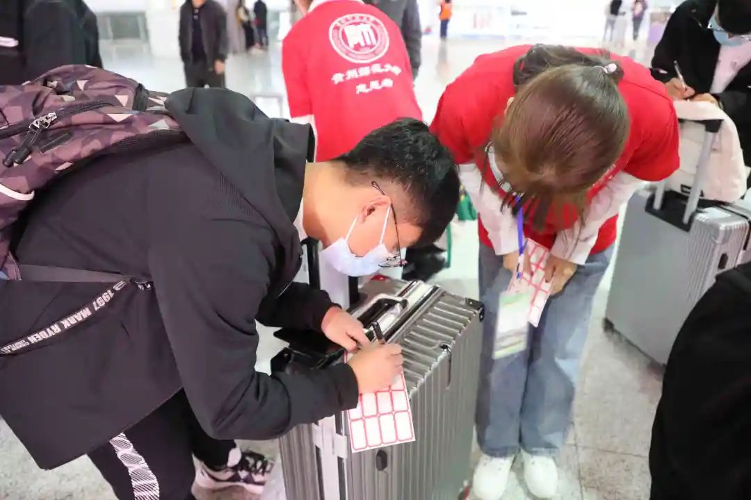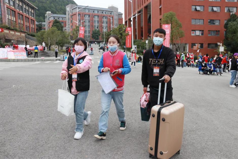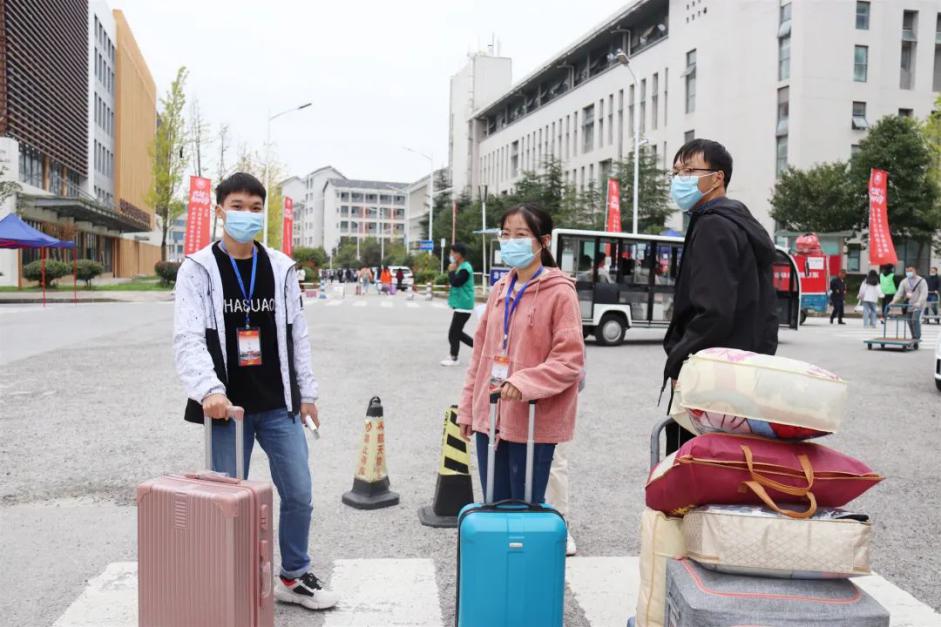 10月9日早上7:00,由唐昀老师和陈飞老师带队的北站迎新志愿者从公司出发,在北站设立的迎新点迎接全校新生,进行量体温、贴行李标签、拎行李、送新生上车等一系列流程。校车将新生们送到公司东、西门,公司引导组志愿者热情的带领新生来到报到点,在报到组志愿者的指引下完成了各项报到工作,接着志愿者们帮助新生前往寝室放置行李,带领他们去公司领取一卡通。